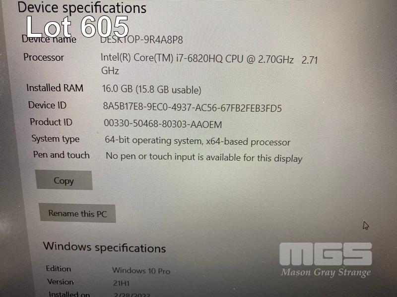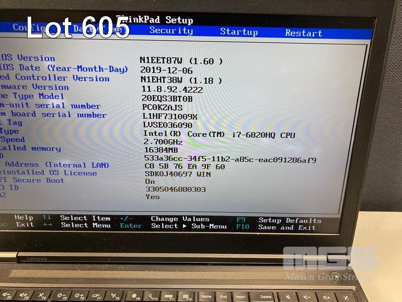 LAPTOP, LENOVO THINKPAD P50 MOBILE WORKSTATION, TYPE 20EQ, CORE i7 6820HQ (6TH GEN) @ 2.7GHz, 16GB DDR4 RAM, 256GB M.2 SSD, 15.6" WIDESCREEN (1920x1080), 4GB NVIDIA QUADRO M2000M VIDEO, Wi-Fi, BLUETOOTH, WINDOWS 10 PRO INSTALLED (NO POWER SUPPLY) (NOTE: MARKS ON SCREEN, MAJOR WHITE SPOT SCREEN BLEMISHES, DAMAGE TO CASING) S/N:PC0KZAJS