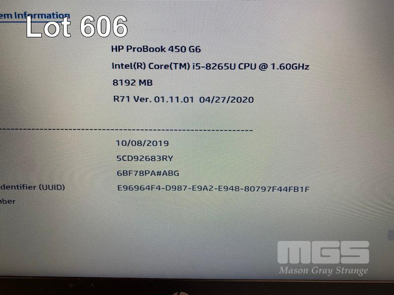 LAPTOP, HP PROBOOK 450 G6, CORE i5 8265U (8TH GEN) @ 1.6GHz, 8GB DDR4 RAM, 256GB SSD, 15.6" WIDESCREEN (1366x768), Wi-Fi, BLUETOOTH, WINDOWS 11 PRO INSTALLED (NO POWER SUPPLY) (NOTE: MARKS ON CASING & SCREEN) S/N:5CD92683RY