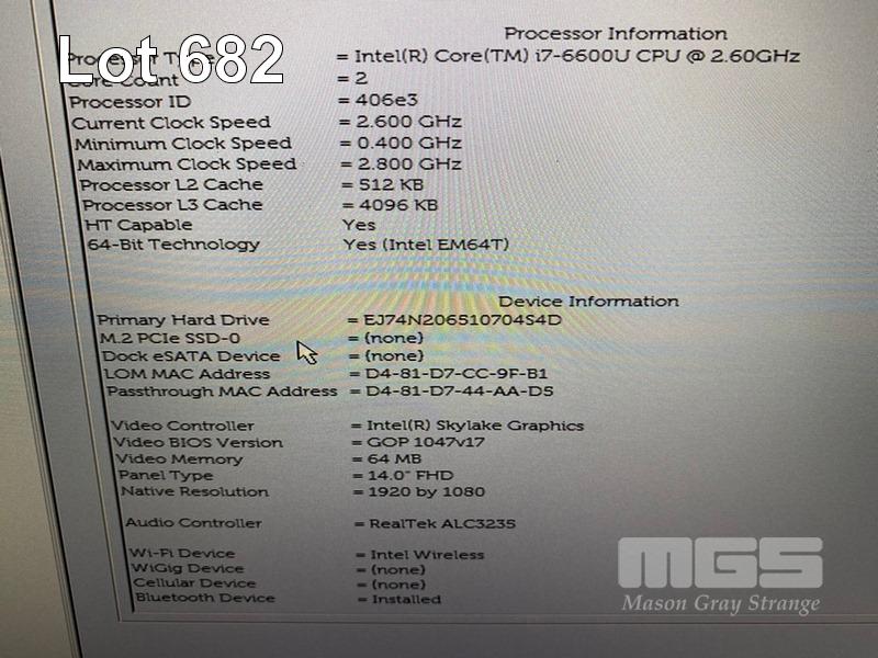 LAPTOP, DELL LATITUDE E7470, CORE i7 6600U (6TH GEN) @ 2.6GHz, 16GB DDR4 RAM, 512GB M.2 SSD, 14" WIDESCREEN (1920x1080), INTEL SKYLAKE GRAPHICS, Wi-Fi, BLUETOOTH, WINDOWS 10 HOME INSTALLED, DOCKING STATION & POWER SUPPLY (NOTE: NO BATTERY) S/N:G6SG4H2