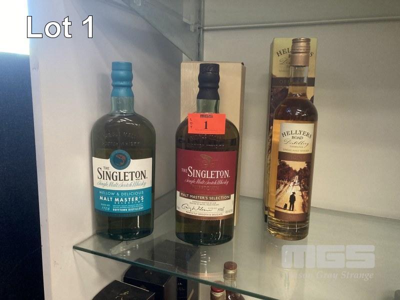 2 x BOTTLES THE SINGLETON MALT WHISKY, 700ml & 1 x BOTTLE HELLYERS ROAD WHISKY, 700ml