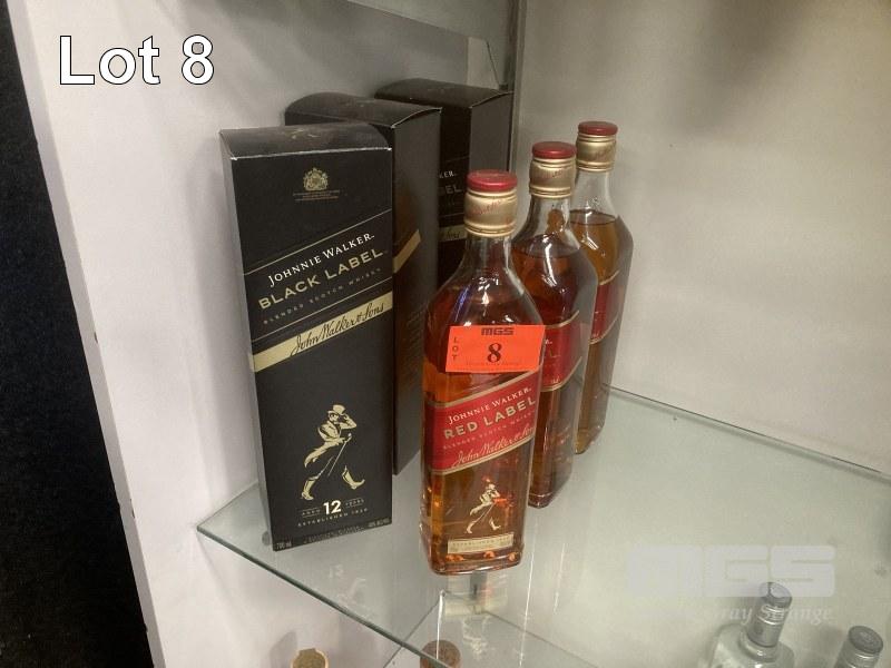 3 x BOTTLES JOHNNIE WALKER BLACK LABEL & 3 x BOTTLES JOHNNIE WALKER RED LABEL, 700ml