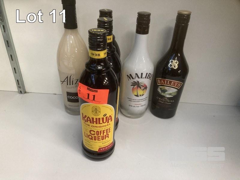 3 x BOTTLES KAHLUA, 1 x BOTTLE BAILEYS, 1 x BOTTLE MALIBU & 1 x BOTTLE ALIZE, 700ml