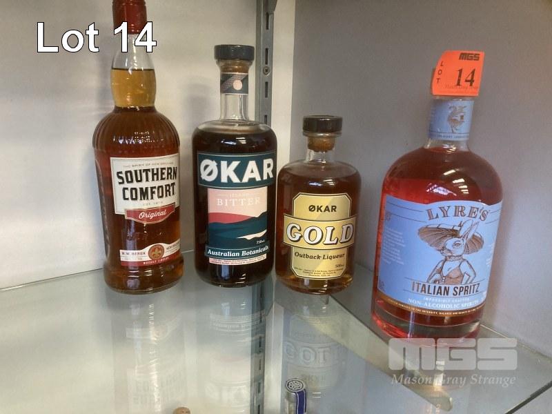 1 x BOTTLE SOUTHERN COMFORT, 700ml, 1 x BOTTLE OKAR ISLAND BITTER, 750ml, 1 x BOTTLE OKAR GOLD, 500ml & 1 x BOTTLE LYRES ITALIAN SPRITZ, 700ml