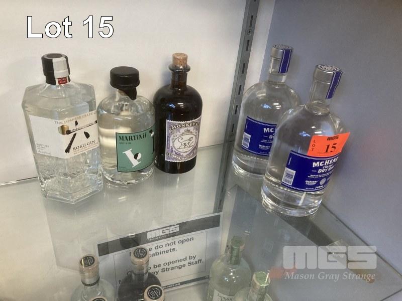 5 x BOTTLES ASSORTED GINS, 500 & 700ml