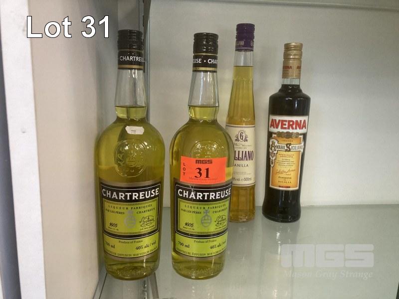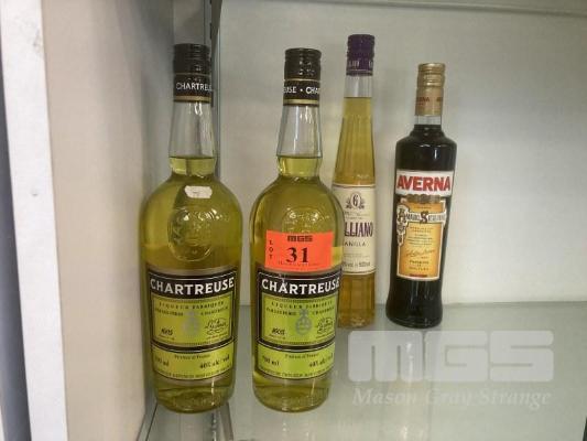 4 x BOTTLES LIQUEURS, CHARTREUSE, GALLIANO & AVERNA, 500 & 700ml