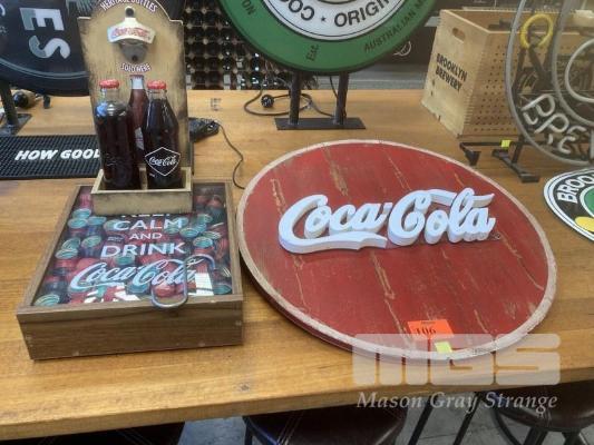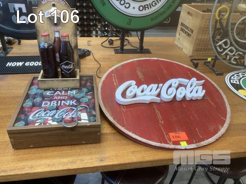 ILLUMINATED SIGN "COCA-COLA" 55cm DIAMETER & 2 HERITAGE BOTTLES