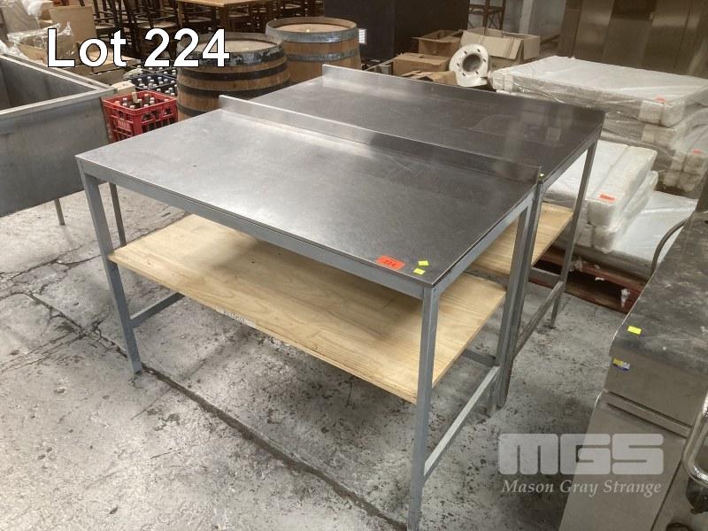 2 x STAINLESS STEEL TOP BENCHES, EACH 126 x 64cm
