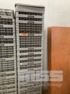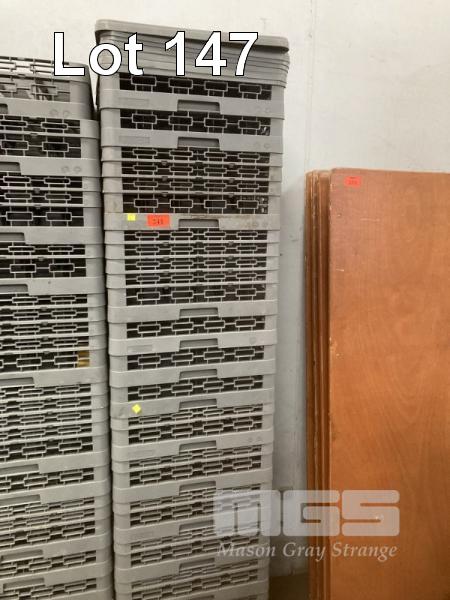 15 X NSF CERTIFIED 25-COMPARTMENT DISHWASHER GLASS TRAYS WITH EXTENDERS. IN GREY. 7 X LIDS. 500 X 500 MM.