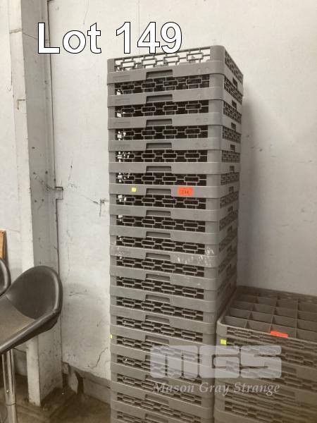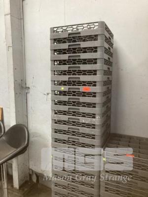 23 X NSF CERTIFIED 25-COMPARTMENT DISHWASHER GLASS TRAYS. IN GREY. 500 X 500 MM.