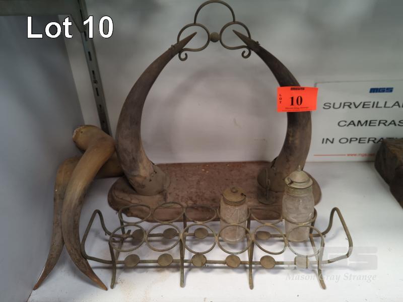 OX HORN DECORATIVE STAND, EPNS CONDIMENT STAND