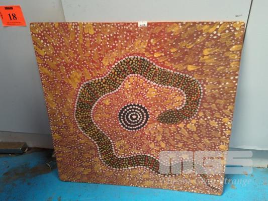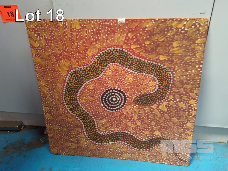 INDIGENOUS DOT PAINTING, OIL ONBOARD, SERPENT, ARTIST UNKNOWN