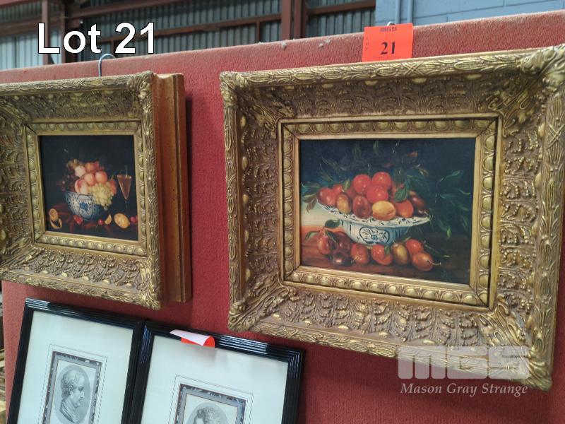 STILL LIFE FRUIT PRINT TITLED RED PLUM IN CHINA BOWL