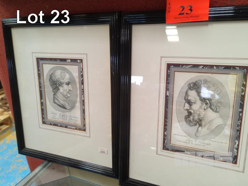 PAIR LITHOGRAPH HEAD BUSTS DEPICTING "TESTE D HERCULE" & "SOLON DES AMETISTE"
