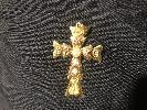 GOLD CRUCIFIX, MARKED 750 (18ct) SET WITH PINK GARNETS & PEARL. 7.4 gms