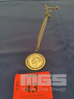 1937 AUSTRALIAN CROWN SET IN SILVER PENDANT & CHAIN MARKED 835