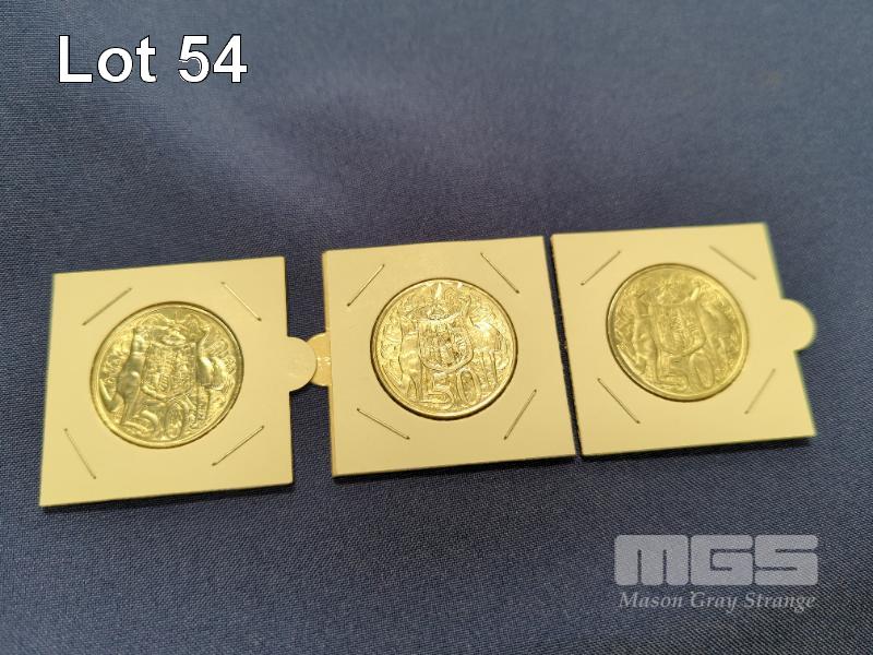 3 x 1966 ROUND .50c PIECES, 80% SILVER CONTENT