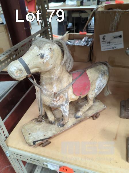 ANTIQUE HORSE ON WAGON TOY