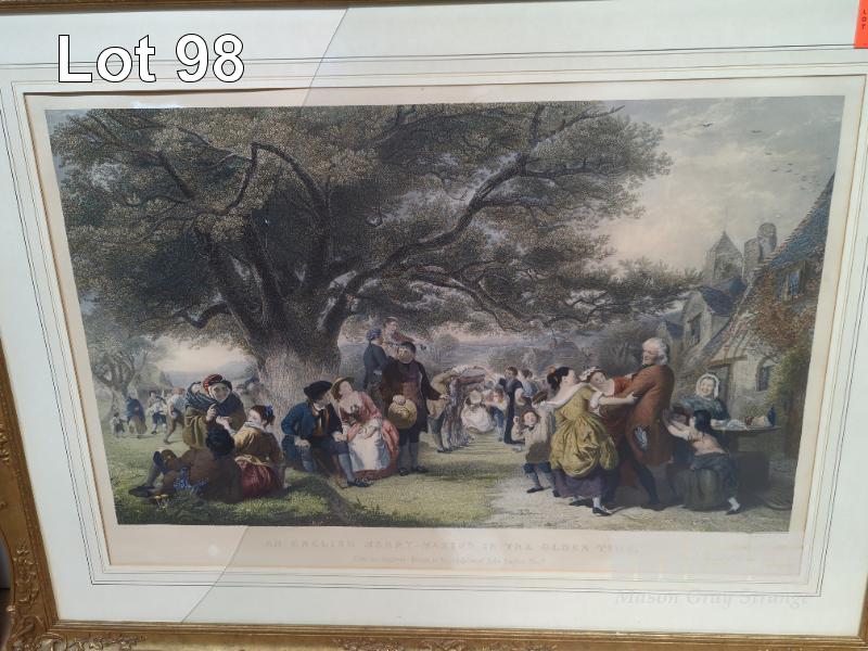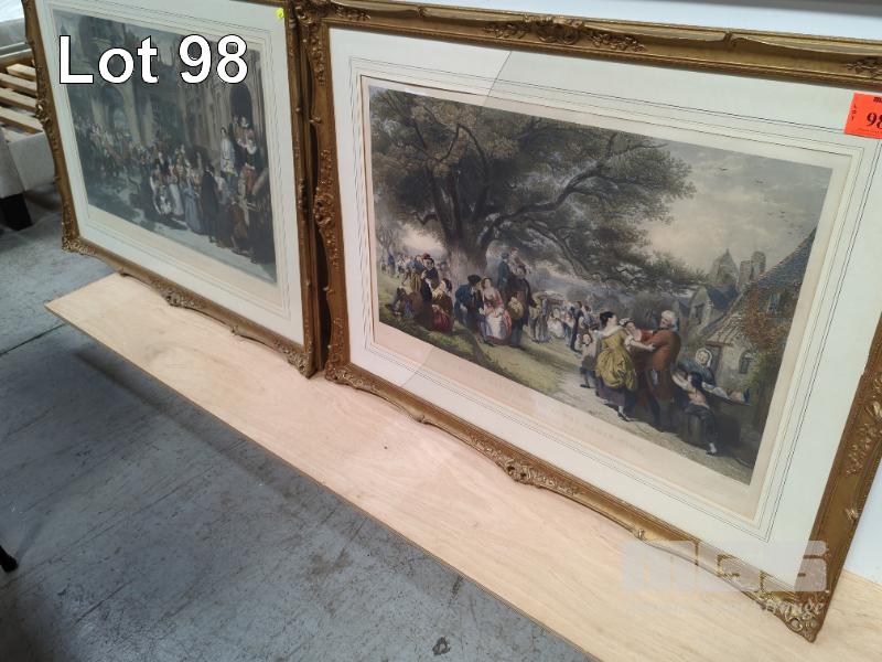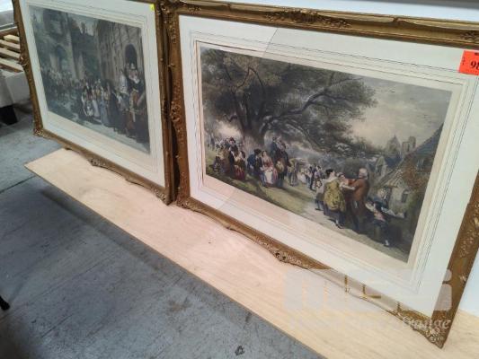 2 x FRAMED PRINTS " AN ENGLISH MERRY MAKING IN THE OLDEN TIME" & "COMING OF AGE IN THE OLDEN TIME" (1 x PANE GLASS BROKEN)