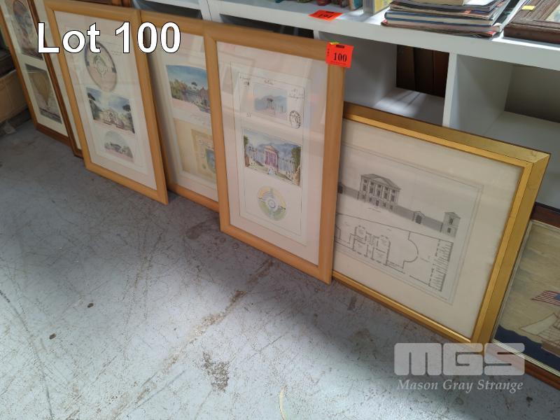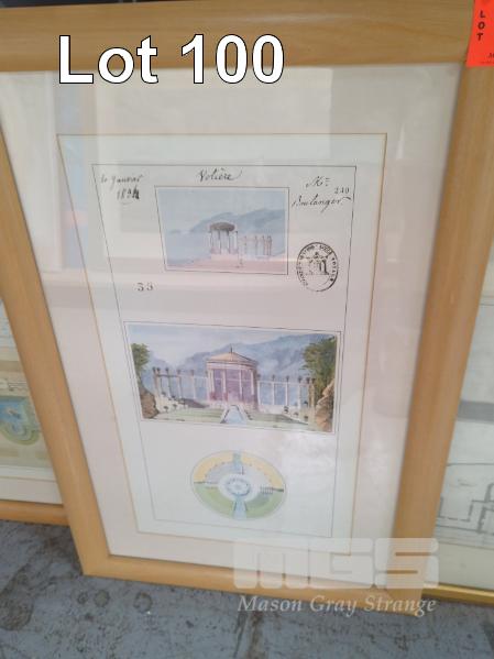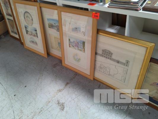 4 x FRAMED ARCHITECTURAL WATERCOLOUR PRINTS, FRENCH THEMED