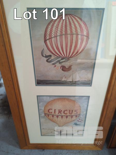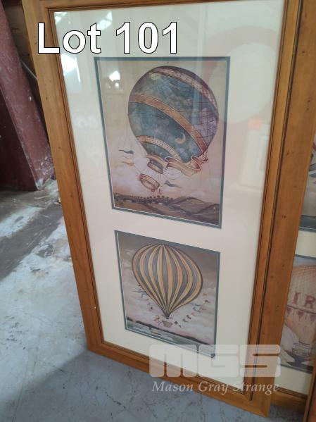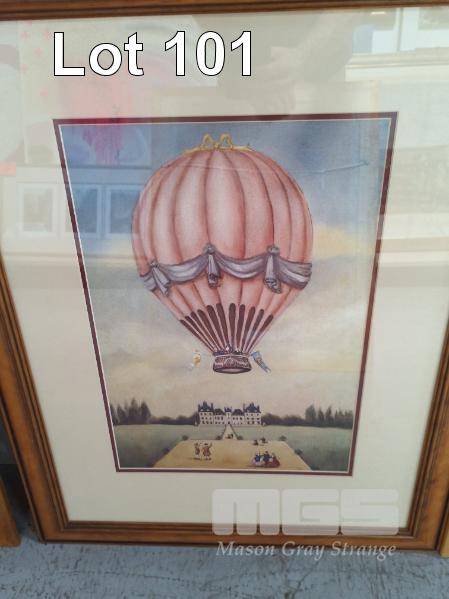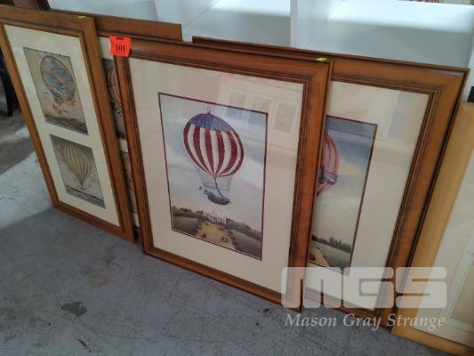 4 x FRAMED ARTISTIC HOT AIR BALLOON PRINTS, 2 x TWIN PANEL & 2 x SINGLE PANEL INC BALLOON IN USA COLOURS OVER THE WHITEHOUSE FLYING THE US FLAG (IRONIC), SIGNED