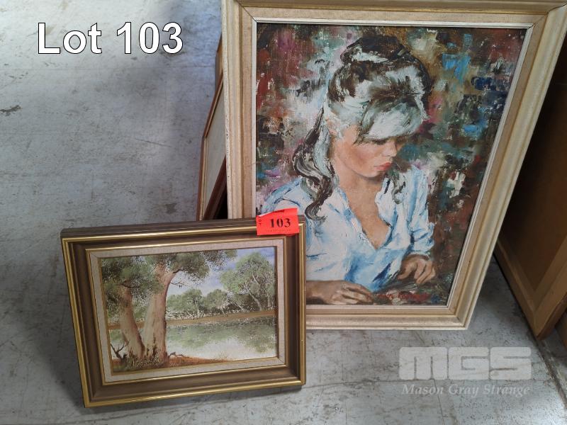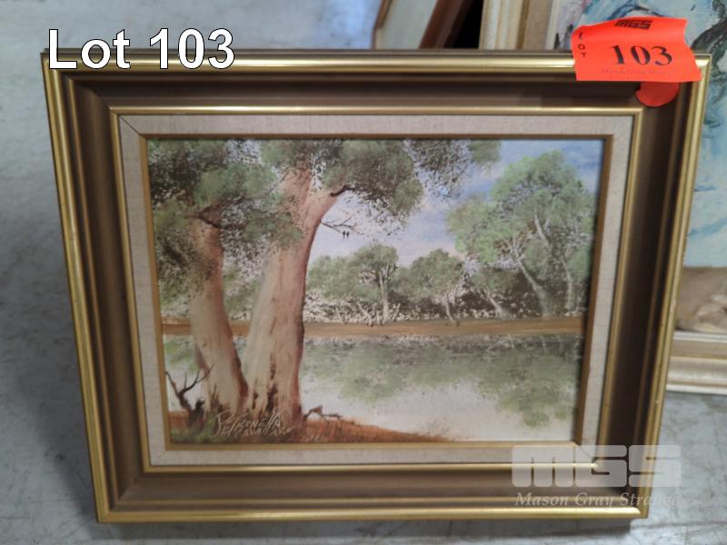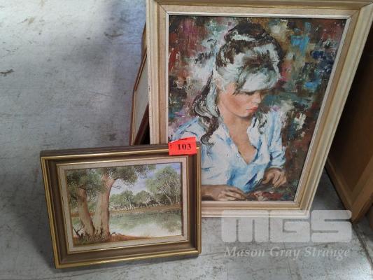 FRAMED OIL ON CANVAS BY BETTY RAPAEL & FRAMED OIL ON BOARD, RIVERSIDE SCENE