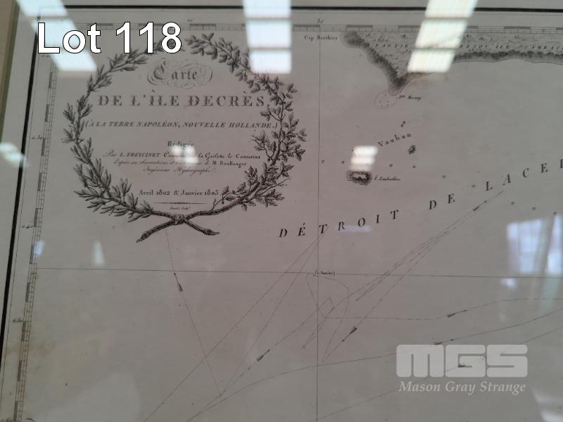 FRAMED NAUTICAL MAPPING PRINT OF KANGAROO ISLAND NAMED, DE L'ILE DECRES, AVRIL 1802 & JANVIER 1803