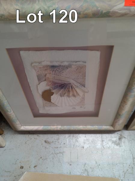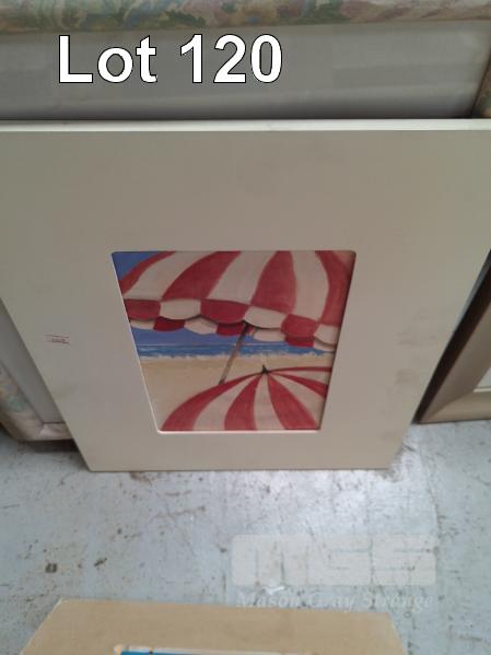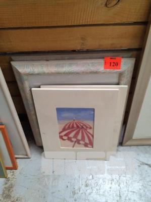4 x FRAMED ORIGINAL ARTWORKS INC PAIR OF BEACH UMBRELLAS BY ANDREW MUNN, NORMANVILLE & TEXTURED WALL DISPLAY