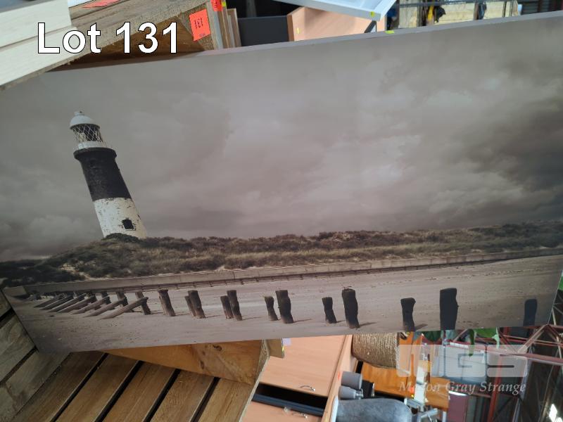 2 x STRETCHED CANVAS ARTWORKS, LIGHTHOUSE & TREES