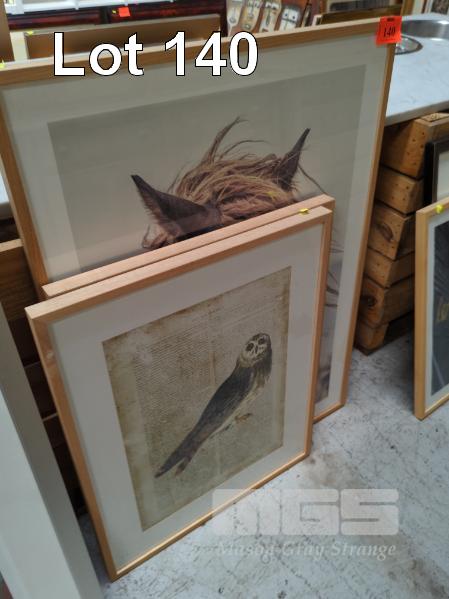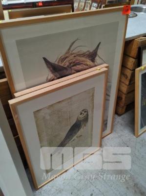 3 x OAK PICTURE FRAMES & ASSORTED ARTWORK