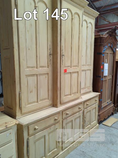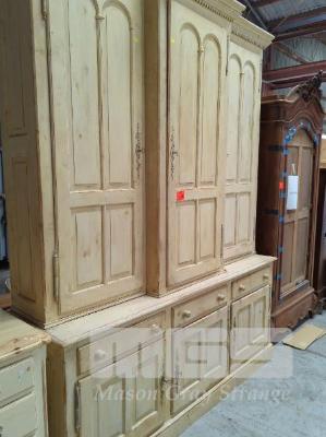 WHITEWASH PINE KITCHEN DRESSER, 6 DOOR, 3 DRAWER STORAGE, 2 PIECE WITH KEYS