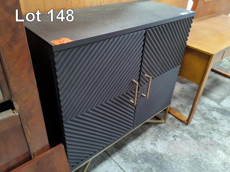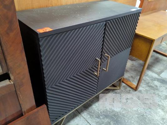 BLACK TEXTURED 2 DOOR STORAGE CABINET ON STEEL BASE