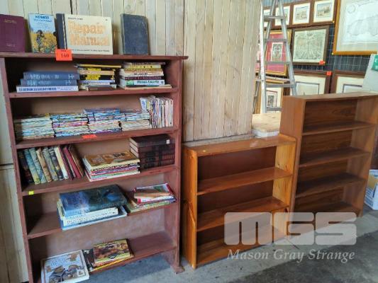 3 x LOWLINE BOOKCASES, 1 x 5 TIER, 1 x 4 TIER & 1 x 3 TIER