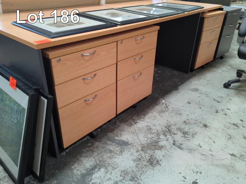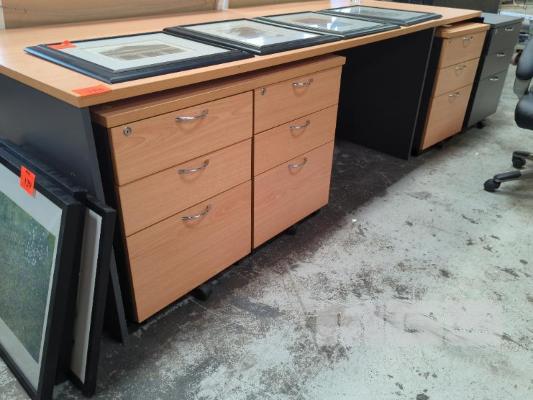 BLONDEWOOD OFFICE DESK & RETURN WITH 4 x 3 DRAWER PEDESTALS
