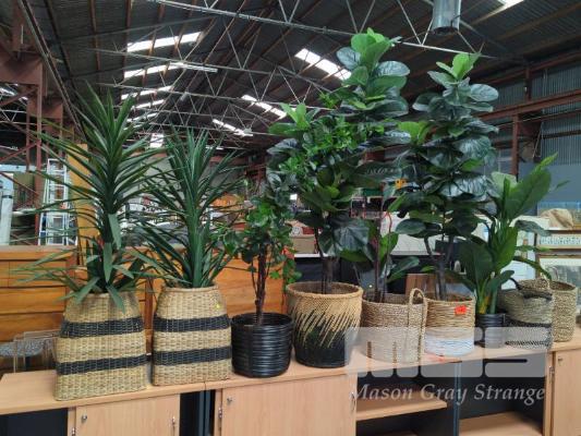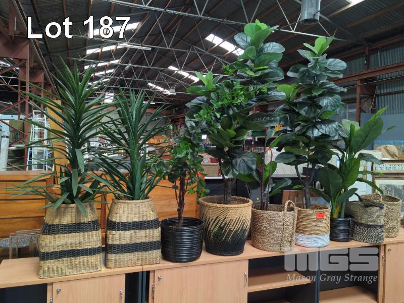 7 x ARTIFICIAL PLANTS IN WOVEN SEAGRASS, CAN & BAMBOO POTS