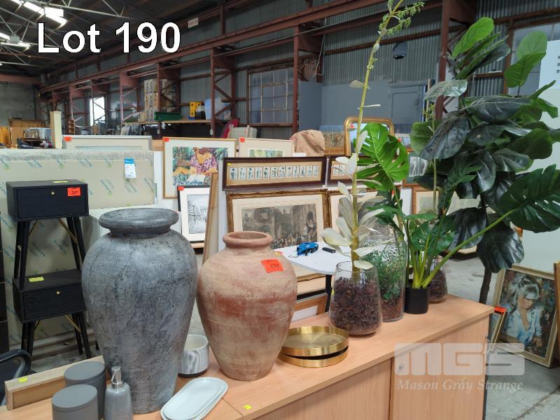 CLAY POTS, GLASS JARS & VASES, ASSORTED CERAMICWARE