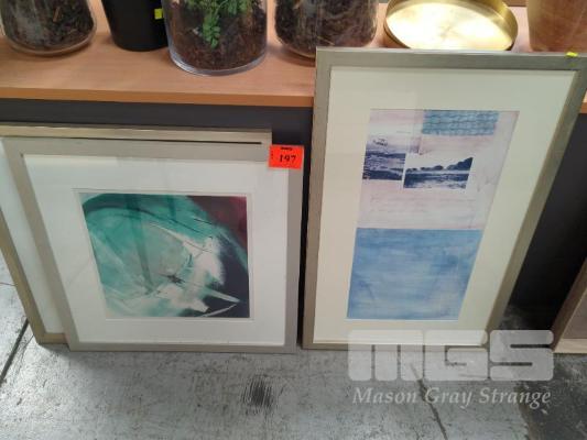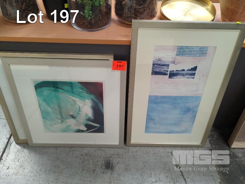 3 x SILVER PICTURE FRAMES CONTAINING CONTEMPORARY PRINTS, ETC