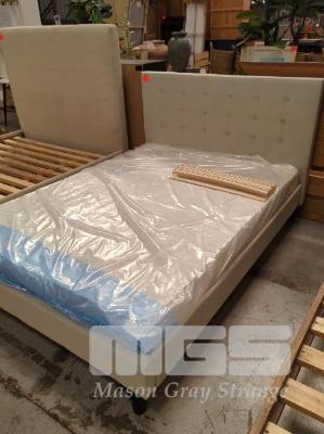QUEEN SIZE BED, LIGHT GREEN FABRIC, DEEP BUTTON BED FRAME & MATTRESS