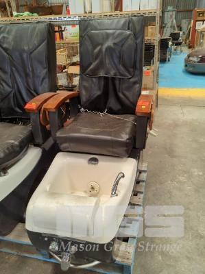 PEDICURE SPA CHAIR, BLACK VINYL TIMBER ARMREST WITH REMOTE