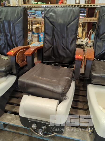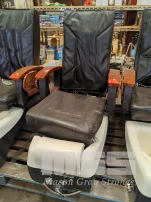 PEDICURE SPA CHAIR, BLACK VINYL TIMBER ARMREST WITH REMOTE