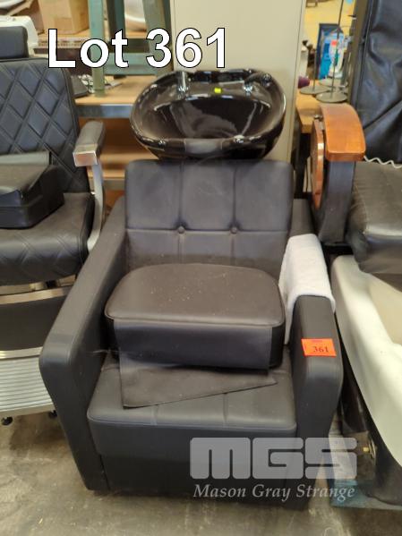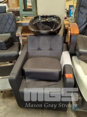 HAIR WASHING STATION, BLACK VINYL UPHOLSTERED BLACK BASIN & TAPWARE