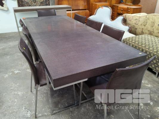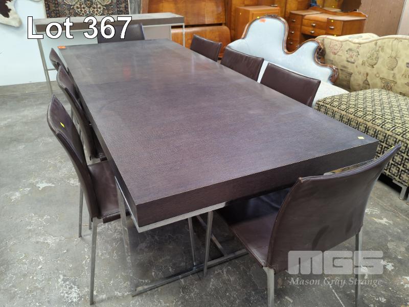CHOCOLATE TIMBER LAMINATE 9 PIECE DINING SUITE COMPRISING RECTANGULAR EXTENSION DINING TABLE & 8 x CHAIRS
