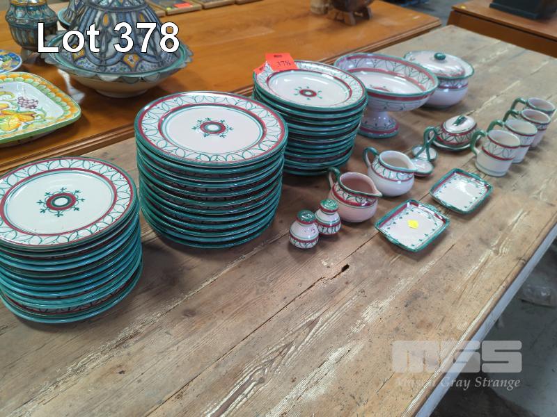 DINNER SERVICES, PLATES, LIDDED DISHES, JUGS, MUGS, BUTTER DISHES, CONDIMENT HOLDER, ETC