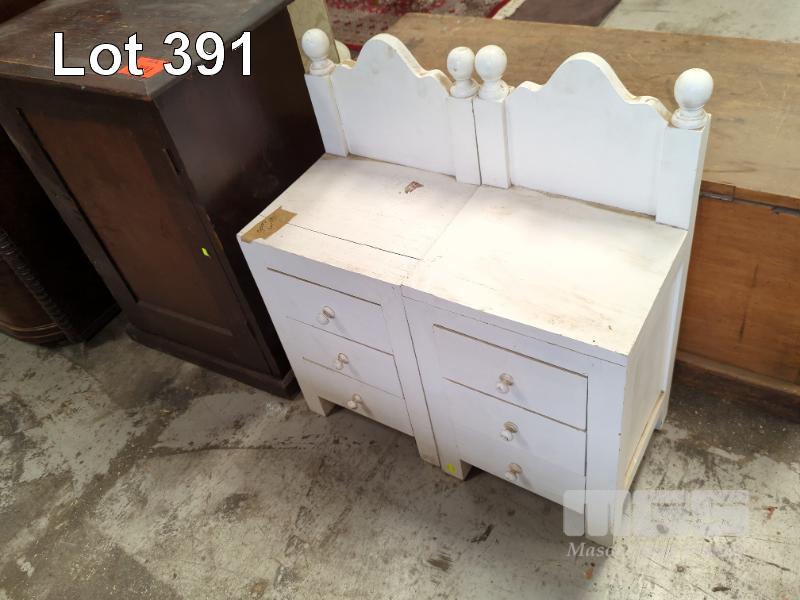 PAIR WHITE PAINTED 3 DRAWER BEDSIDE CABINET & ANTIQUE SINGLE DOOR CABINET