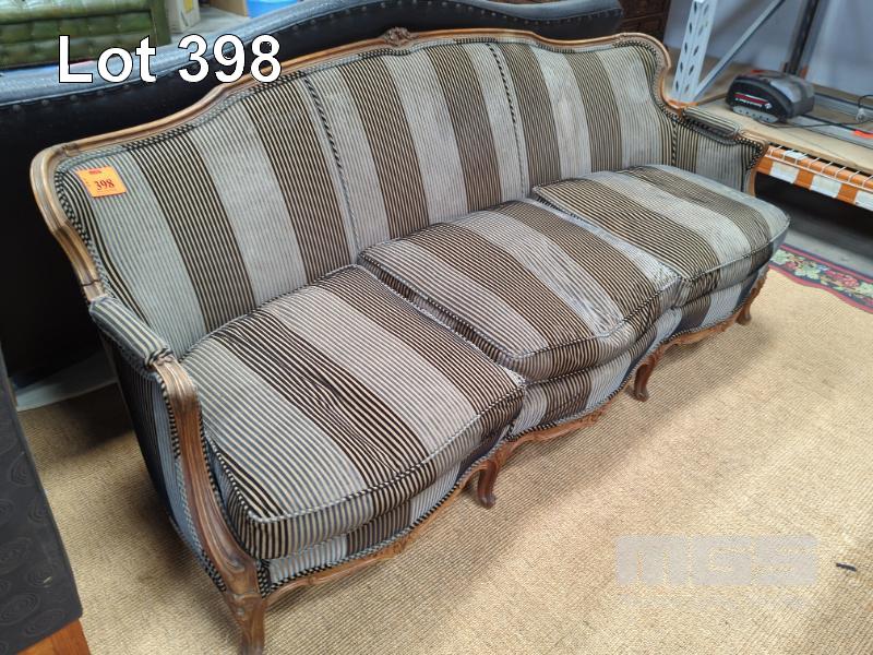 GREY FABRIC UPHOLSTERED 3 SEATER SOFA, TIMBER FRAMED