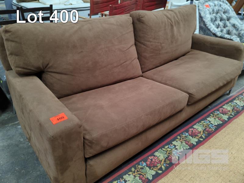 BROWN FABRIC UPHOLSTERED 3 SEATER SOFA
