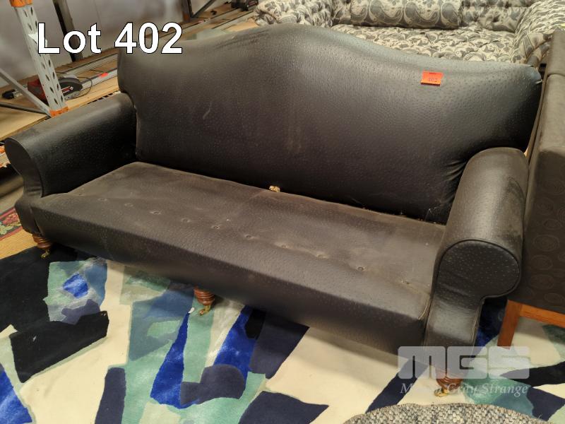 BLACK LEATHER UPHOLSTERED ROLL ARM 3 SEATER SOFA