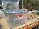4 x PLASTIC TUBS & CONTENTS CRYSTAL CHANDELIERS, & OTHER LIGHT FITTINGS