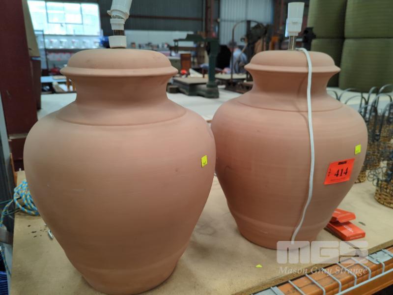 PAIR TERRACOTTA TABLE LAMPS, NO SHADES