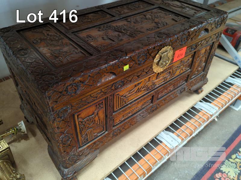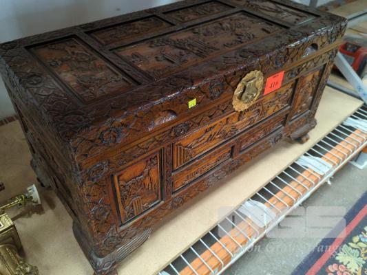CAMPHORWOOD CHEST, ORNATE ORIENTAL CARVING