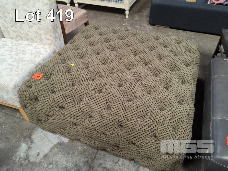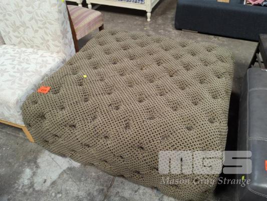 GREEN LEATHER UPHOLSTERED DEEP BUTTON OTTOMAN